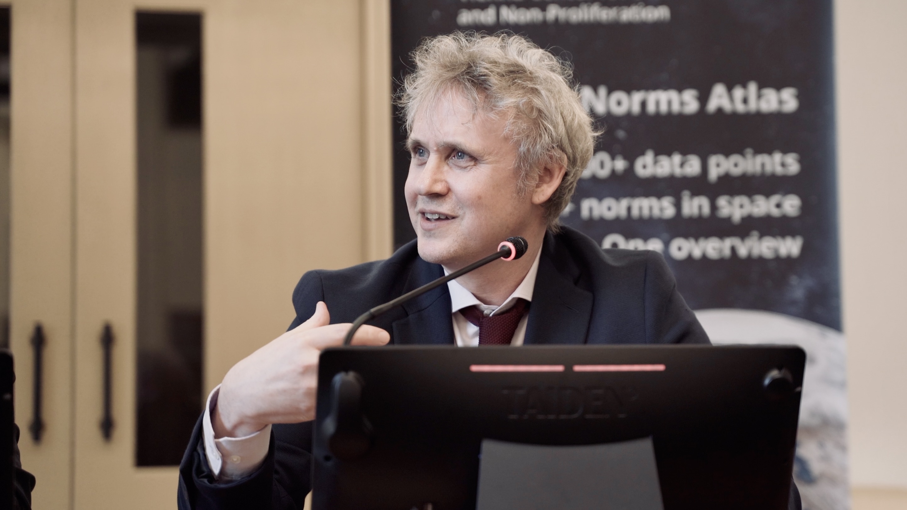 He highlighted the important contribution of the Space Norms Atlas in providing a central overview of States’ proposals for space security mechanisms that, so far, have been dispersed in hundreds of records across years of UN meetings. He stressed that the Space Norms Atlas can help States move their discussions from principles to concrete proposals, especially in the Open-Ended Working Group on PAROS in All its Aspects.